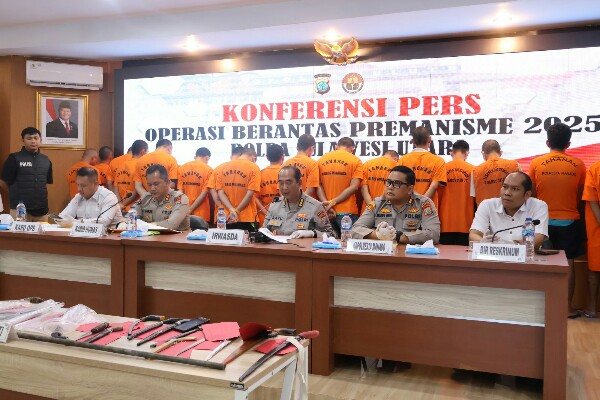 “Hasil Operasi Berantas Premanisme sejak tanggal 1 Mei sampai 18 Mei 2025 sebanyak 189 kasus, terdiri dari sajam 43 kasus, minuman beralkohol 85 kasus, pungutan liar 12 kasus dan gangguan ketertiban umum sebanyak 49 kasus,” jelas Kombes Pol Bayu.