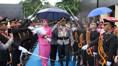“Dengan penuh khidmat, kami, jajaran Perwira Polri, membentuk formasi pedang pora sebagai gerbang kehormatan bagi Irjen Pol Suyudi dan keluarga saat beliau meninggalkan Polda Banten, suasana haru dalam momen ini, sebagai tanda perpisahan yang penuh rasa bangga dan hormat atas kepemimpinan beliau selama menjabat di Polda Banten,” ungkapnya.