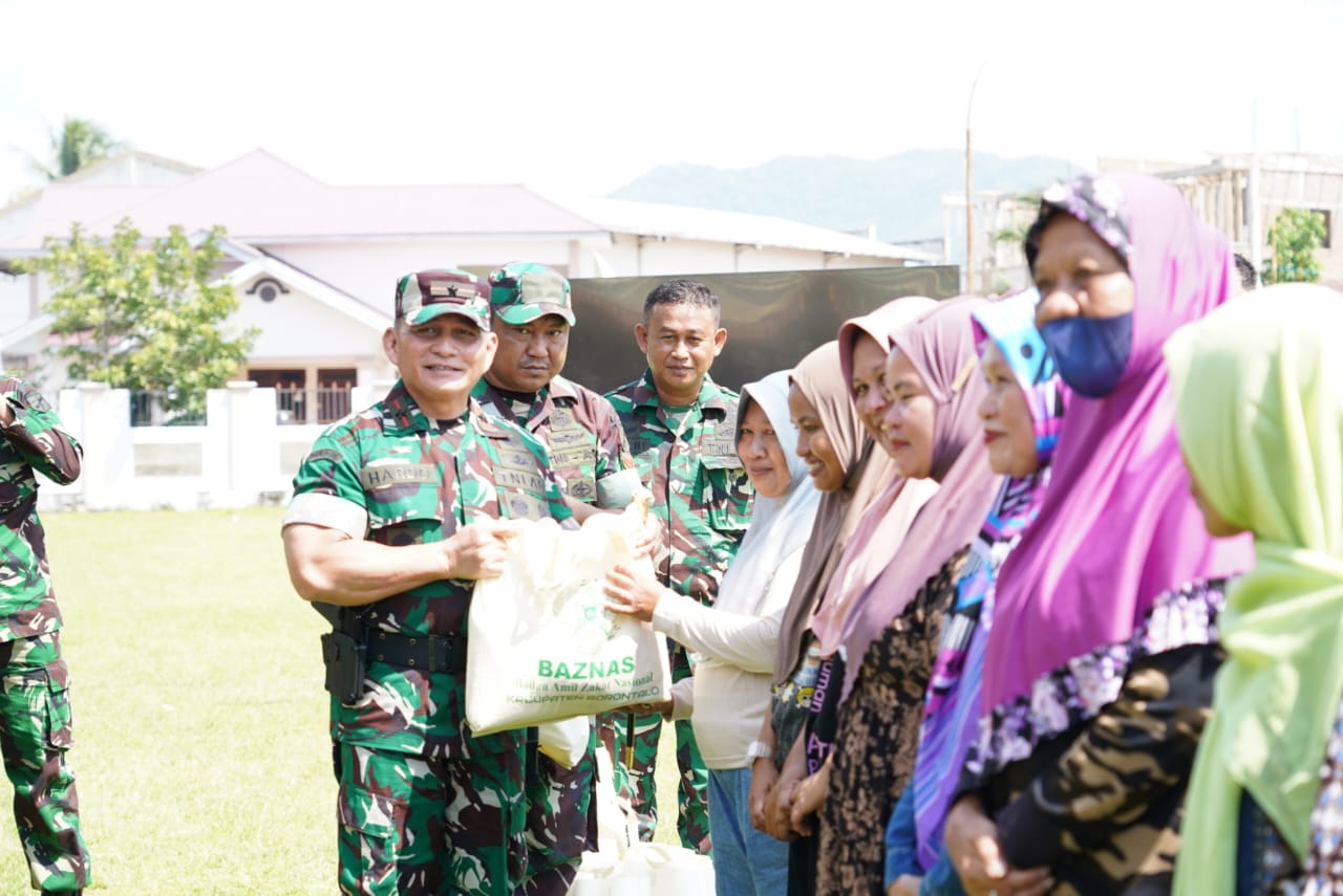 Setelah melaksanakan upacara penutupan TMMD, Danrem 133/NW didampingi Dandim 1315/Kabupaten Gorontalo bersama rombongan melaksanakan pemberian bantuan sosial secara simbolis kepada masyarakat, peninjauan bakti sosial, pengobatan gratis dan gerakan pangan murah.