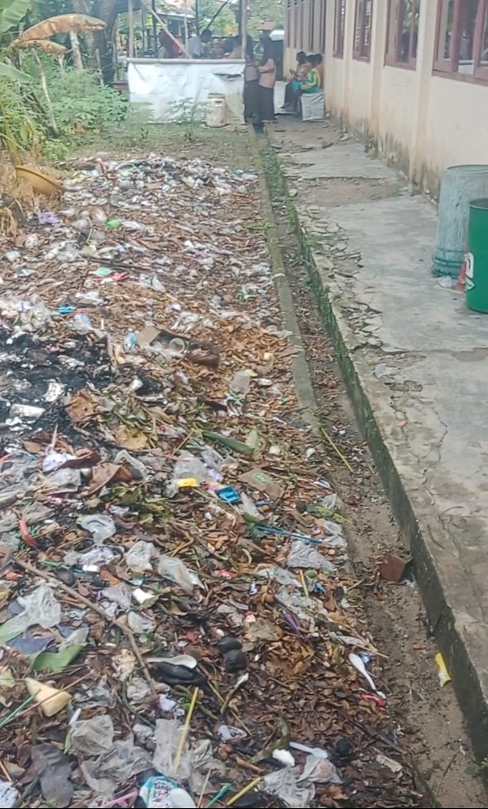 “Kalau papan publikasi dulu ada, tapi sudah lama tidak terlihat. Untuk sampah di belakang sekolah, biasanya kami bersihkan seminggu sekali,” ungkapnya.