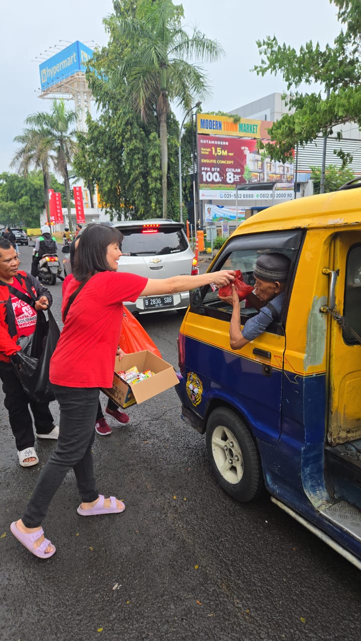 Anggota DPRD Kota Tangerang dari Fraksi PSI Kota Tangerang – Theresia Megawati Wijaya saat Membagikan Takjil (Foto: Red)