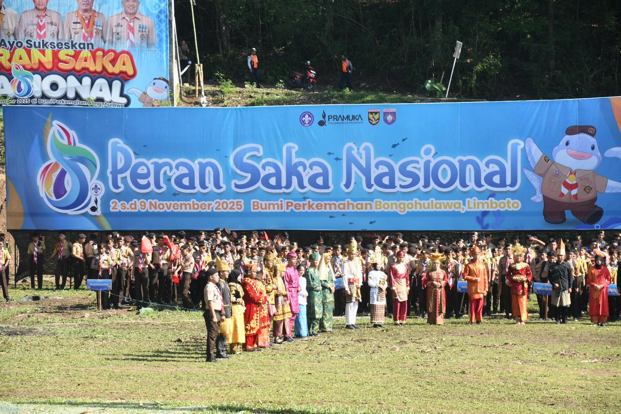 Gorontalo, zonanlasional.id – Upacara Pembukaan Peran Saka Nasional 2025 telah dilaksanakan di Bumi Perkemahan Bongohulawa, Kecamatan Limboto, Kabupaten Gorontalo. Kegiatan ini dihadiri oleh Kapolda Gorontalo, Irjen Pol Drs. Widodo SH MH, serta ribuan peserta pramuka dari seluruh Indonesia.