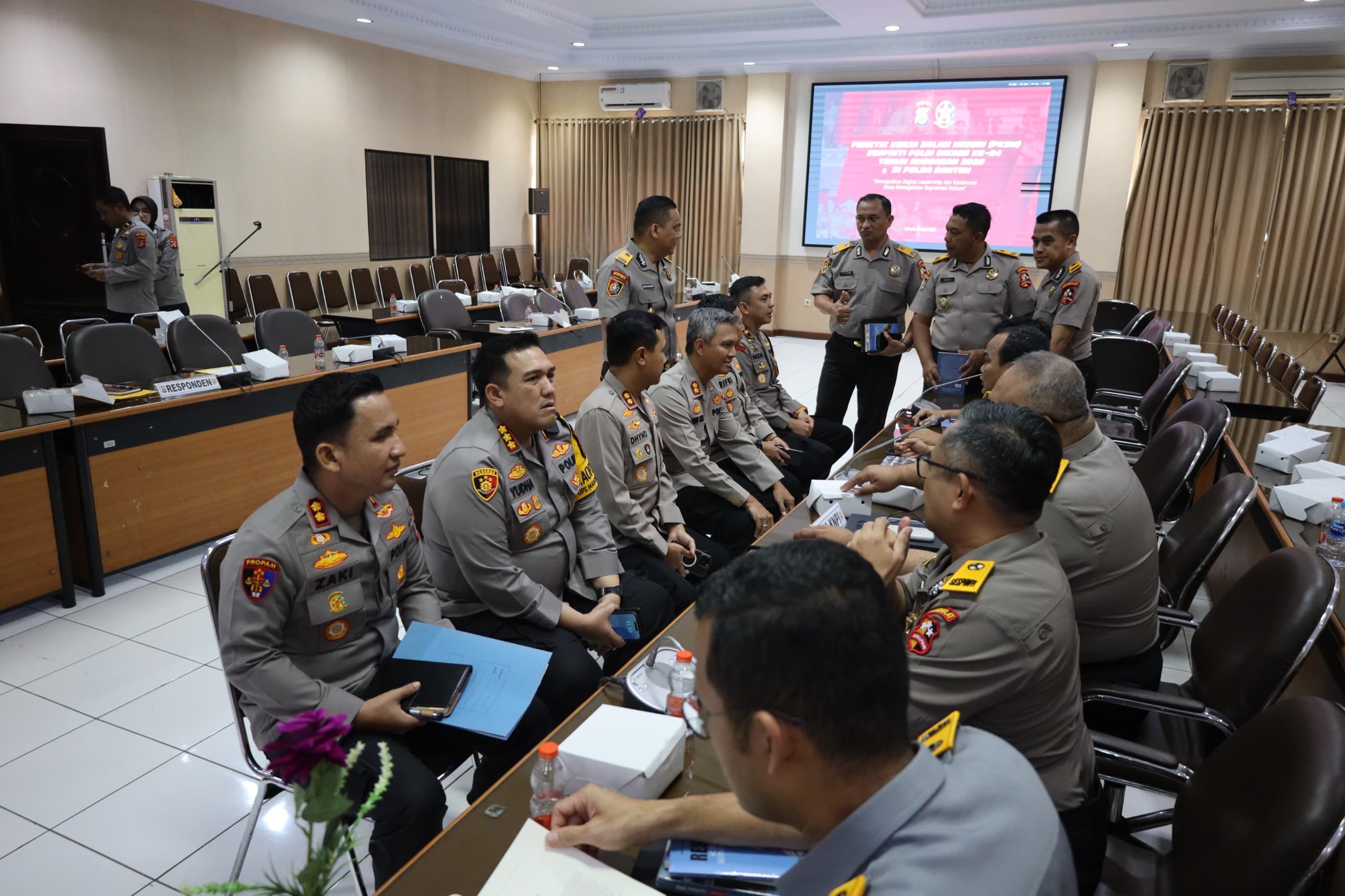 Turut hadir mendampingi Kapolda Banten, Katim Praktik Kerja Dalam Negeri Sespimti Polri Irjen. Pol. Jawari, Irjen. Pol. Mohamad Agung Budijono, Wakapolda Banten Brigjen Pol. Hengki, para Pejabat Utama (PJU) Polda Banten, beserta Kapolres dan Kapolresta jajaran. Kehadiran mereka menjadi simbol sinergi dan komitmen kolektif dalam mendukung proses seleksi serta evaluasi kader pimpinan Polri yang berintegritas dan profesional.