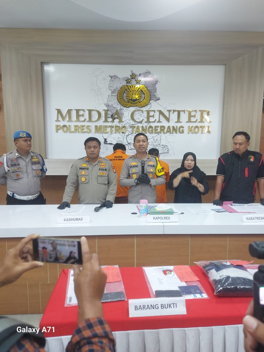 Polres Metro Tangerang Kota saat menggelar konferensi pers terkait penyebab kematian perempuan muda di Hotel Golden Tulip.