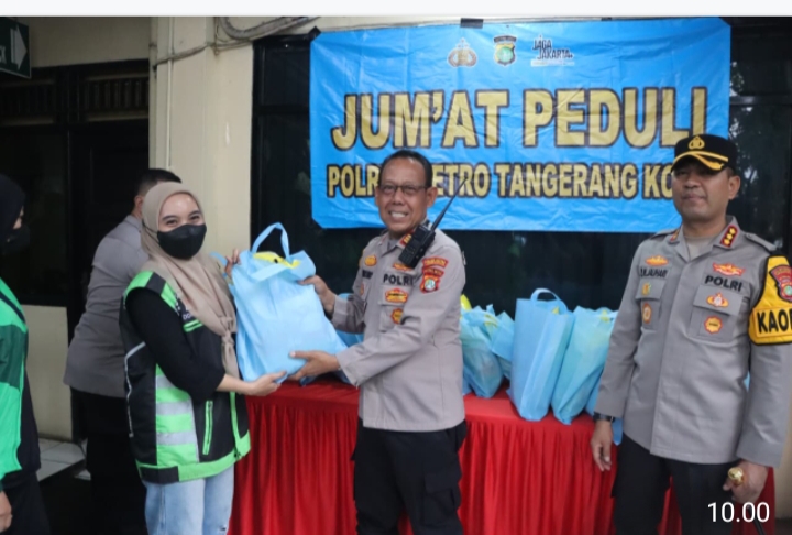 Tangerang – zonanasional.iid Polres Metro Tangerang Kota kembali melaksanakan kegiatan Jumat Peduli, sebuah program berbagi dan silaturahmi dengan masyarakat. Pada Jumat (5/12/2025), kegiatan dipimpin langsung oleh Kapolres Metro Tangerang Kota Kombes Pol. Dr. Raden Muhammad Jauhari, S.H., S.I.K., M.Si., bertempat di halaman Mapolsek Tangerang, Jalan TMP Taruna, Sukasari.