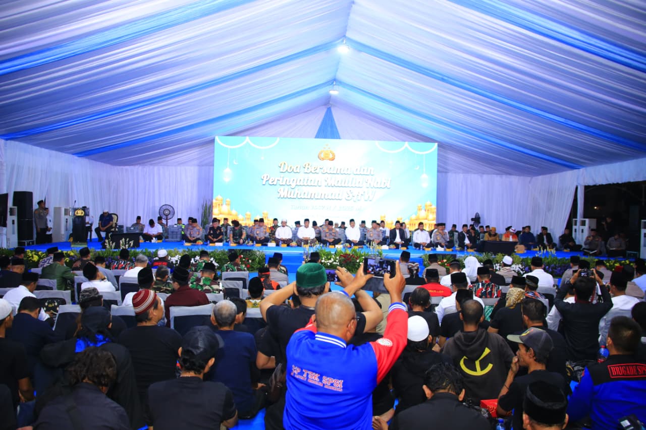 Jakarta – Polda Metro Jaya menggelar doa bersama dan peringatan Maulid Nabi Muhammad SAW di Polda Metro Jaya, Jakarta Selatan. Kapolri Jenderal Listro Sigit Prabowo turut hadir dalam doa bersama dan maulid.