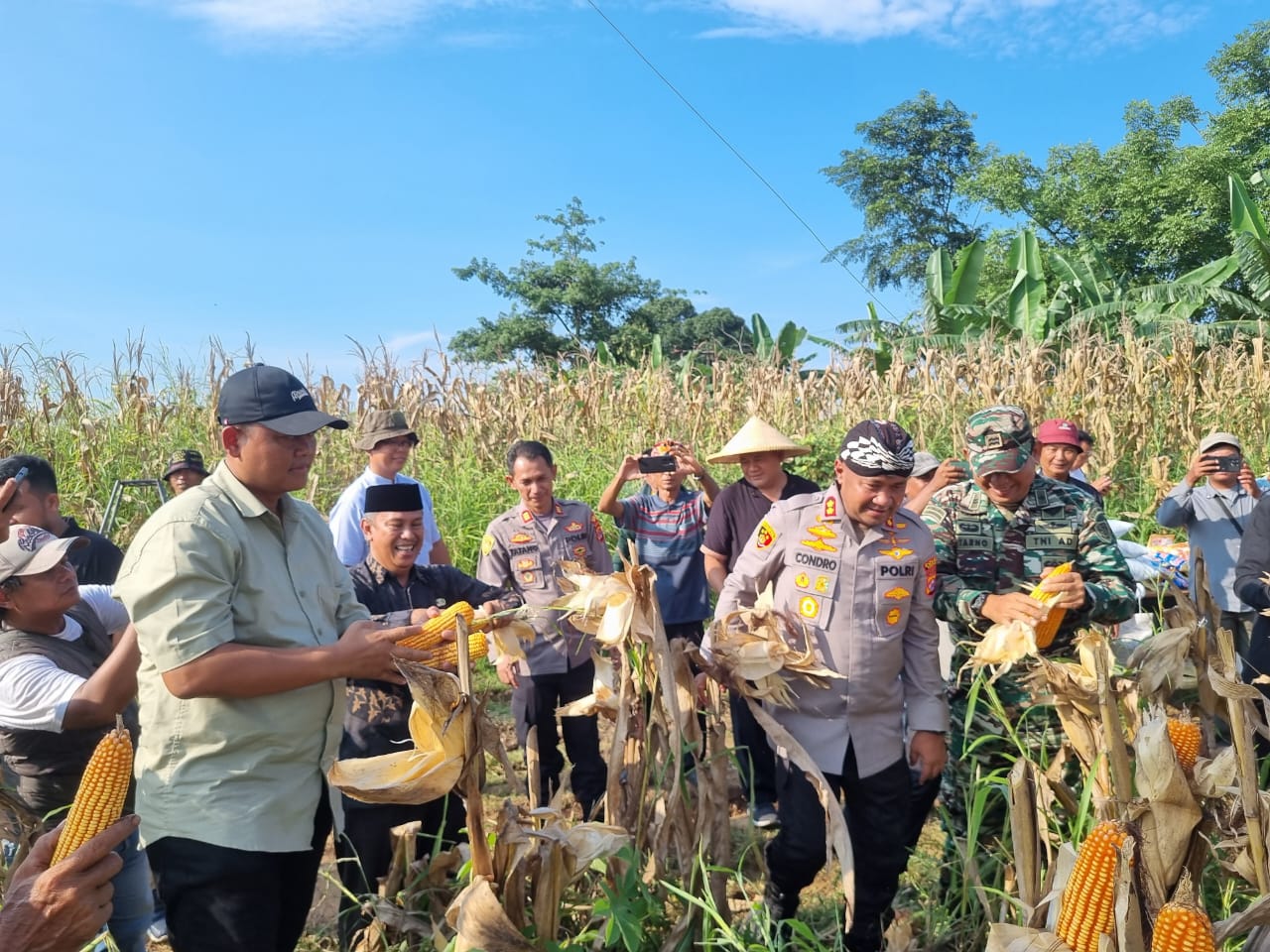 Hadir dalam panen raya jagung, Kasatintelkam Iptu Saeful Sani, Kanit Intelkam AKP Muklas, Babinsa Koramil dan Kades Cikande Oman Saputra serta tokoh masyarakat setempat.