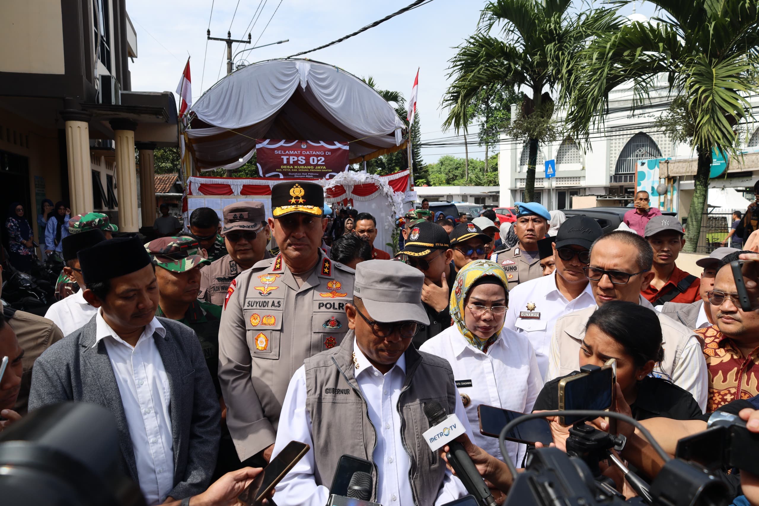 Serang, zonanasional.id — Dalam rangka memastikan pelaksanaan Pemungutan Suara Ulang (PSU) di Kabupaten Serang berjalan aman dan kondusif, Kapolda Banten Irjen Pol Suyudi Ario Seto Bersama Gubernur Banten Andra Soni didampingi PJU Polda Banten serta Forkopimda Provinsi Banten meninjau langsung sejumlah Tempat Pemungutan Suara (TPS) pada Sabtu (19/4).