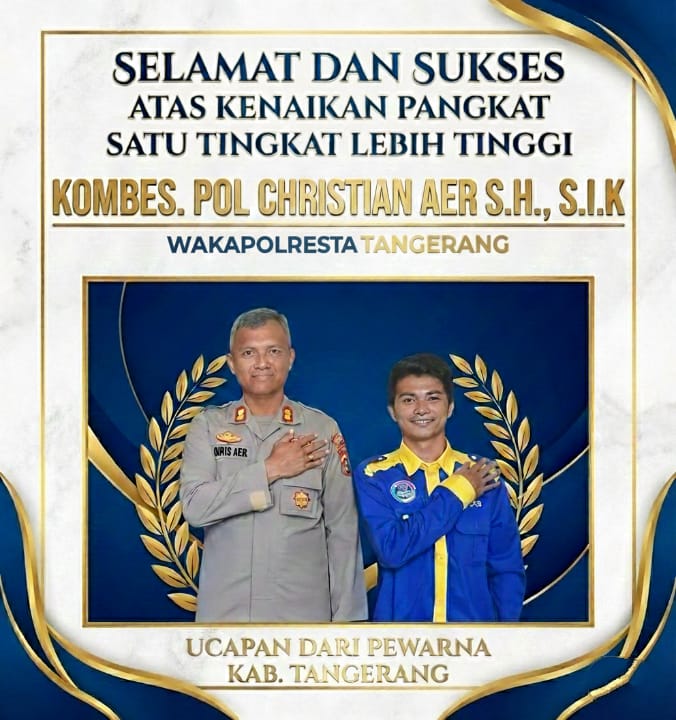 Tangerang. — Pengurus Cabang Persatuan Wartawan Nasrani Indonesia (PC Pewarna) Kabupaten Tangerang mengucapkan selamat dan sukses atas kenaikan pangkat satu tingkat lebih tinggi kepada Kombes Pol. Christian Aer, S.H., S.I.K, Wakapolresta Tangerang.