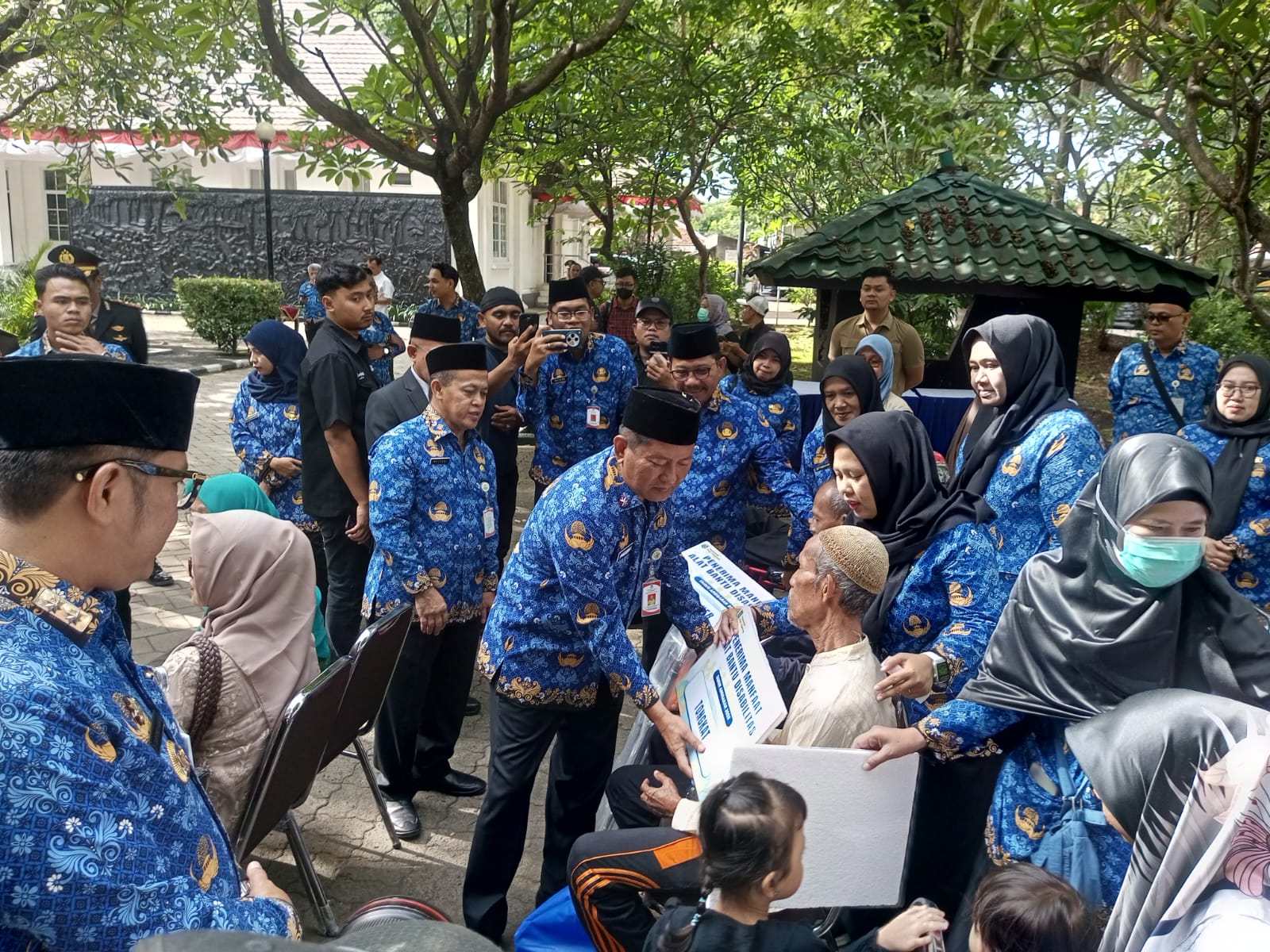 Secara simbolis giat ini telah dilaksanakan usai apel peringatan Hari Pahlawan di Taman Makam Pahlawan Taruna, Wali Kota Tangerang Sachrudin secara simbolis menyerahkan bantuan alat bantu bagi penyandang disabilitas dan santunan untuk para veteran, Senin (10/11) kemarin.