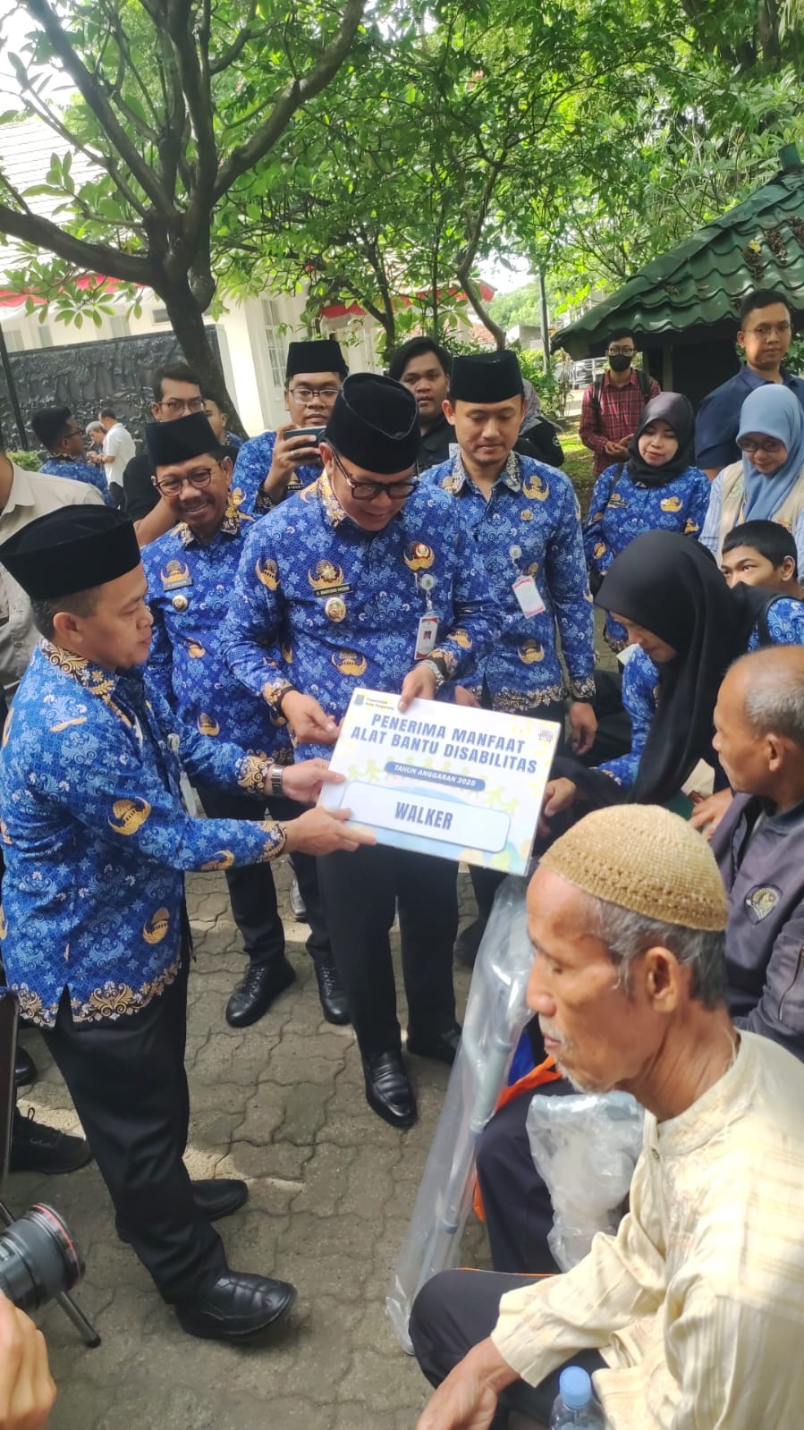 Secara simbolis giat ini telah dilaksanakan usai apel peringatan Hari Pahlawan di Taman Makam Pahlawan Taruna, Wali Kota Tangerang Sachrudin secara simbolis menyerahkan bantuan alat bantu bagi penyandang disabilitas dan santunan untuk para veteran, Senin (10/11) kemarin.