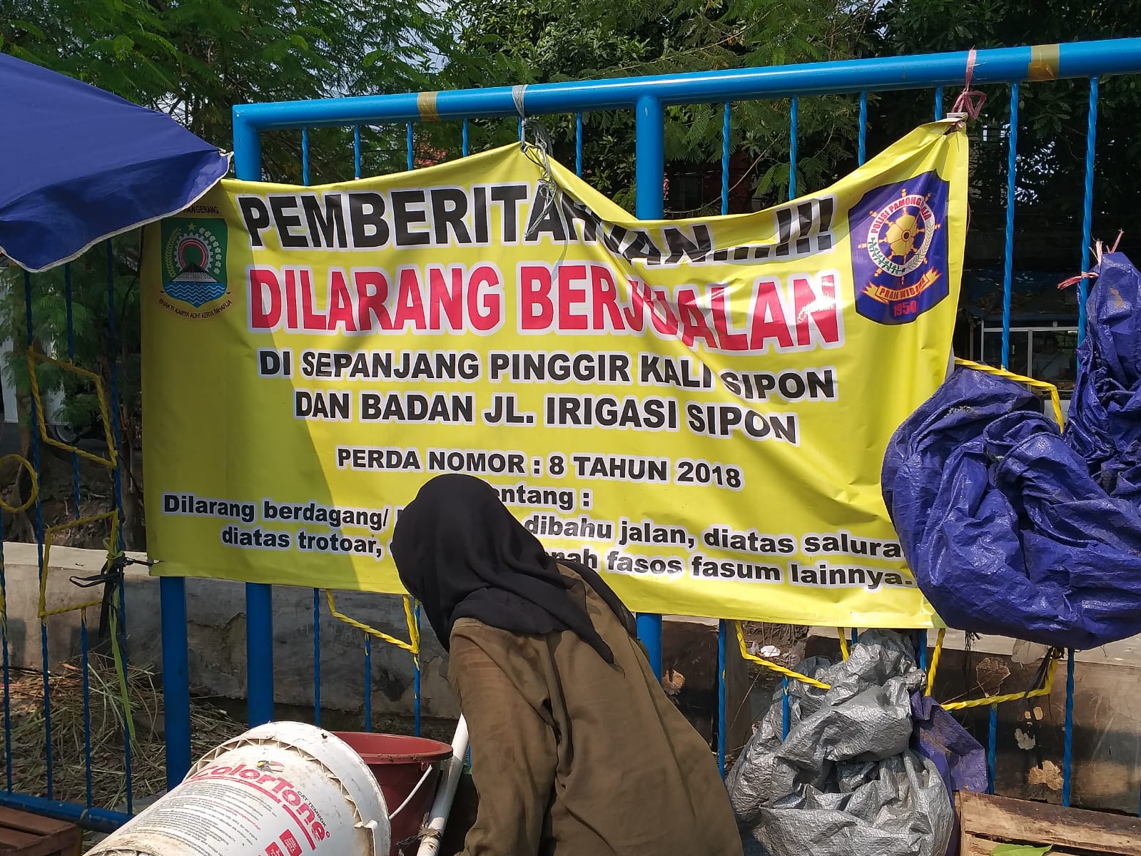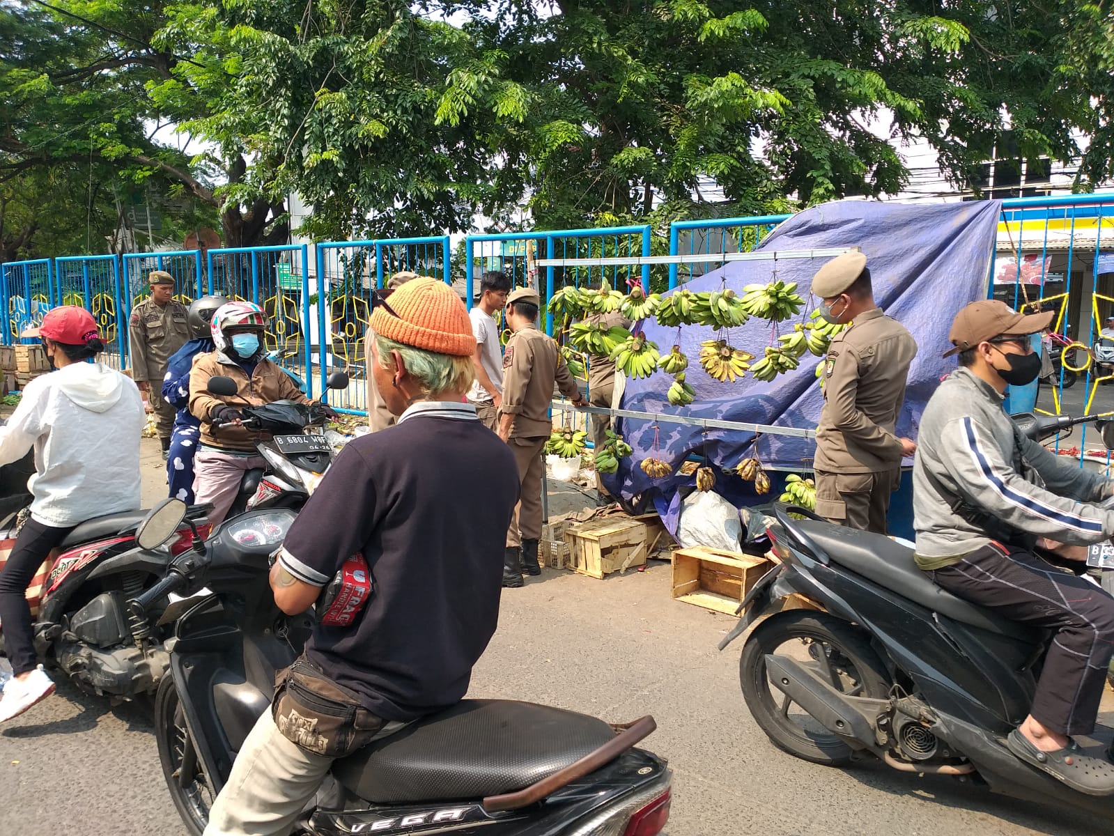 Puluhan petugas melakukan sosialisasi, peneguran, dan pengusiran terhadap para pedagang yang berjualan di pinggir jalan. Upaya penertiban ini dilakukan untuk menertibkan kegiatan perdagangan yang telah berulang kali mengabaikan larangan yang tercantum dalam Perda No. 8 Tahun 2018.
