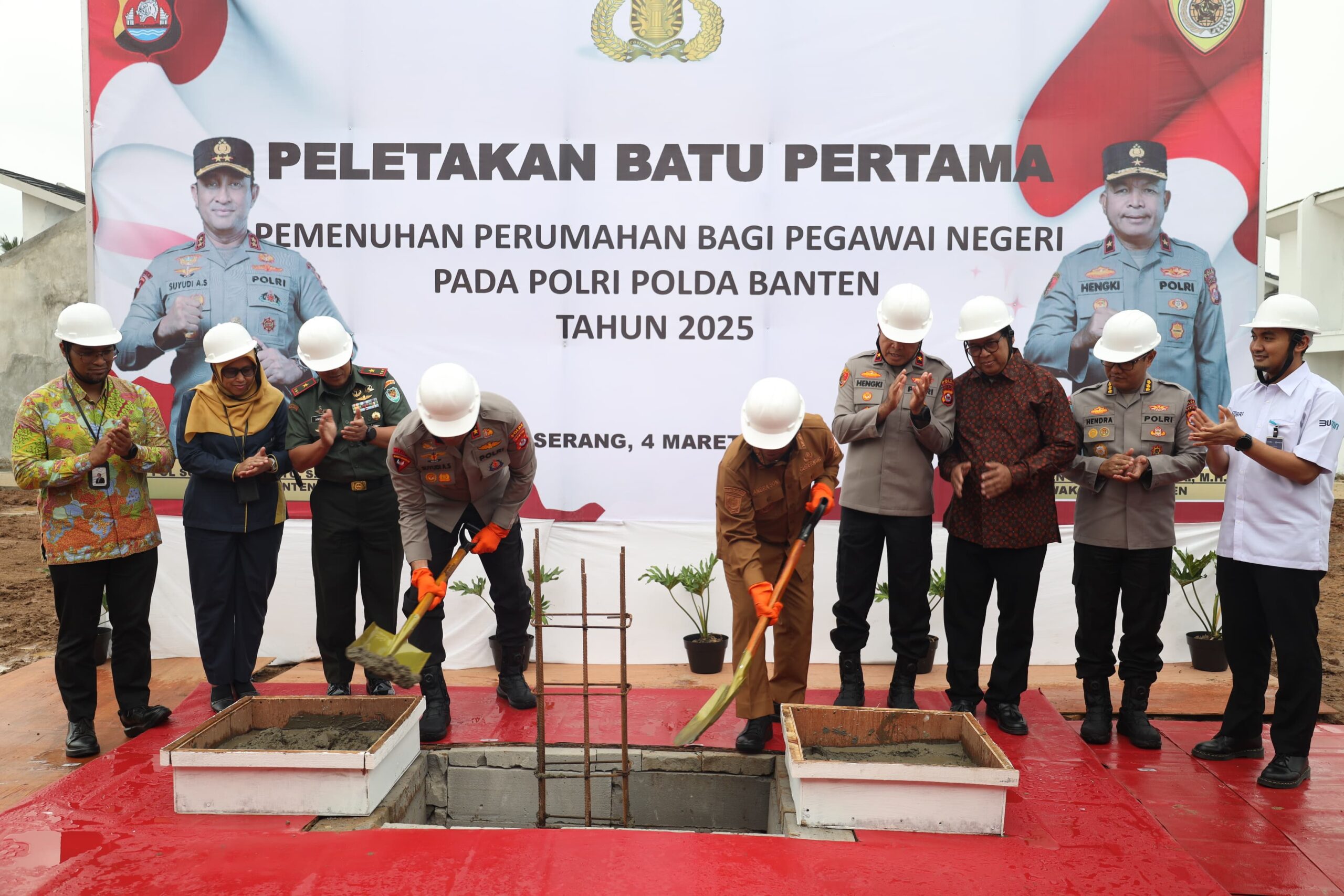 Serang, zonanasional.id – Polda Banten menggelar peletakan batu pertama pemenuhan perumahan bagi pegawai negeri pada Polri tahun 2025 yang bertempat Perumahan Banjarsari Homeland, Jalan Cibebek Sewor Kel. Banjarsari Kec. Cipocok Jaya Kota Serang pada Selasa (04/02).