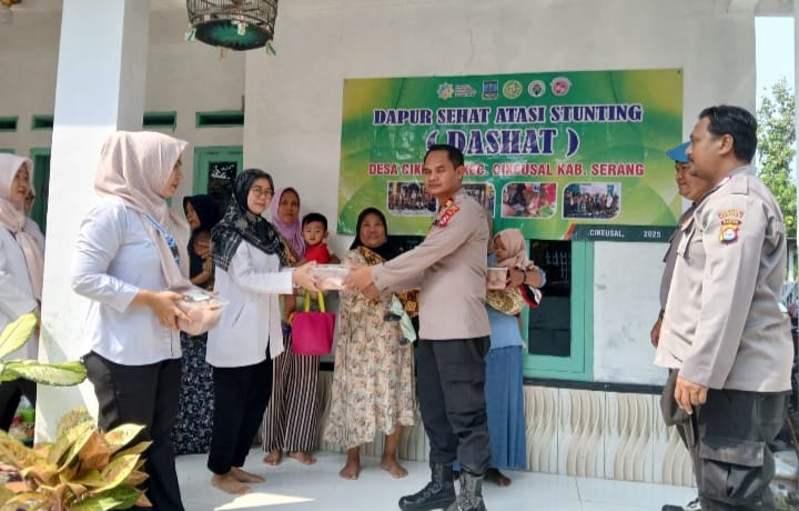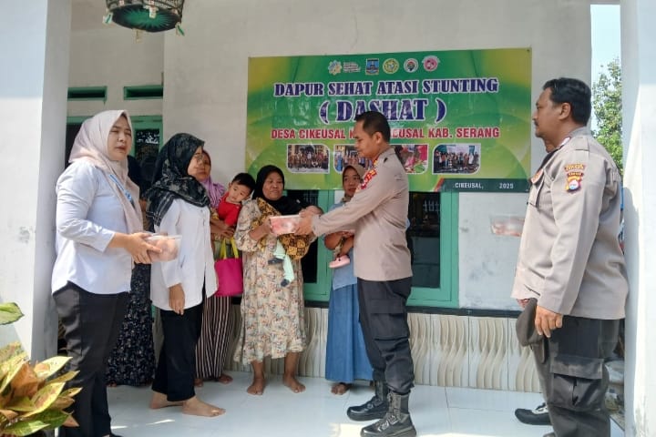 Polres Serang Salurkan Bantuan Pangan Bergizi untuk Atasi Stunting di Cikeusal