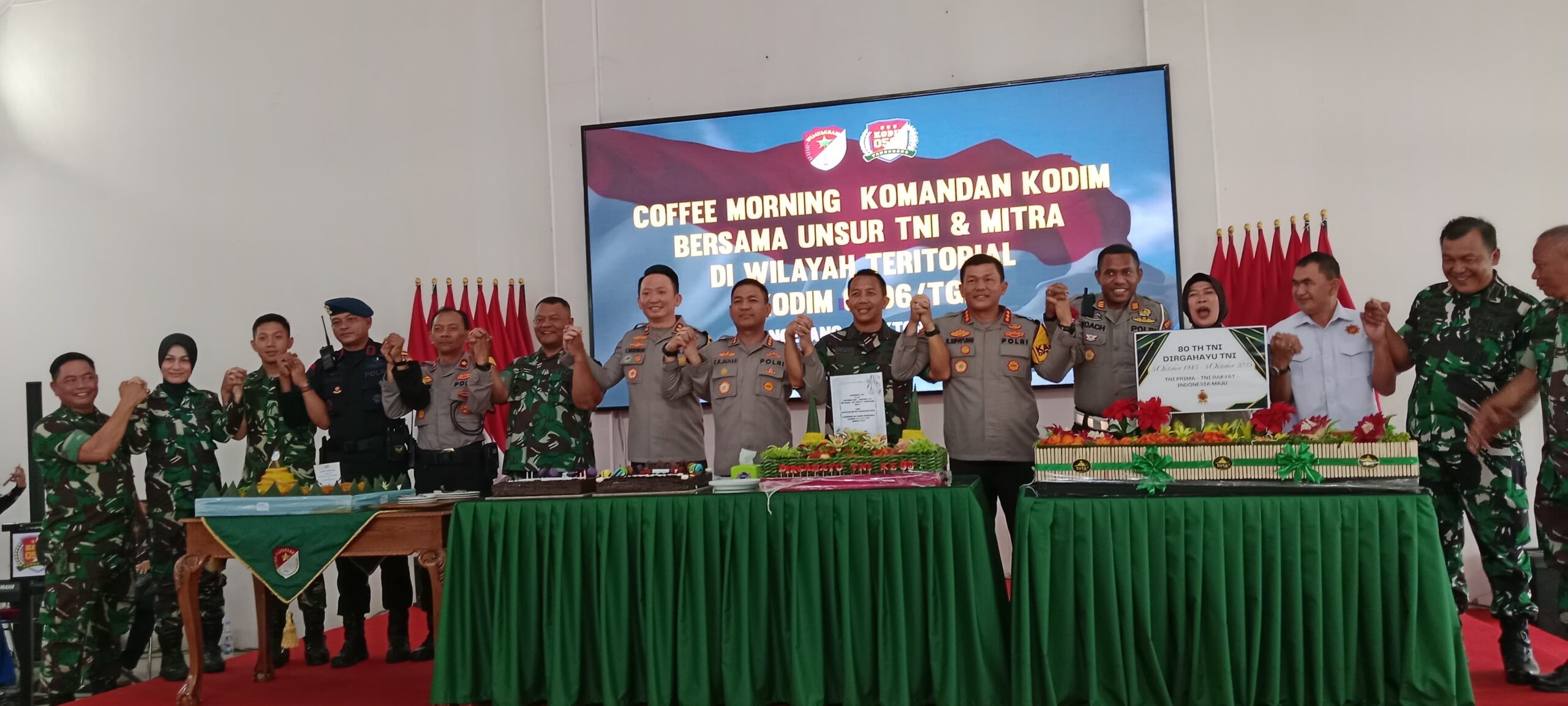Momen Hari Ulang Tahun (HUT) TNI ke-80 menjadi simbol keharmonisan dan sinergitas antara TNI dan Polri. Dalam suasana penuh keakraban, tiga Kapolres yang berada di wilayah teritorial Kodim 0506 Tangerang Kota turut memeriahkan peringatan tersebut melalui kegiatan ajangsana yang digelar di Gedung Serba Guna Palapa, Makodim 0506 Tangerang.