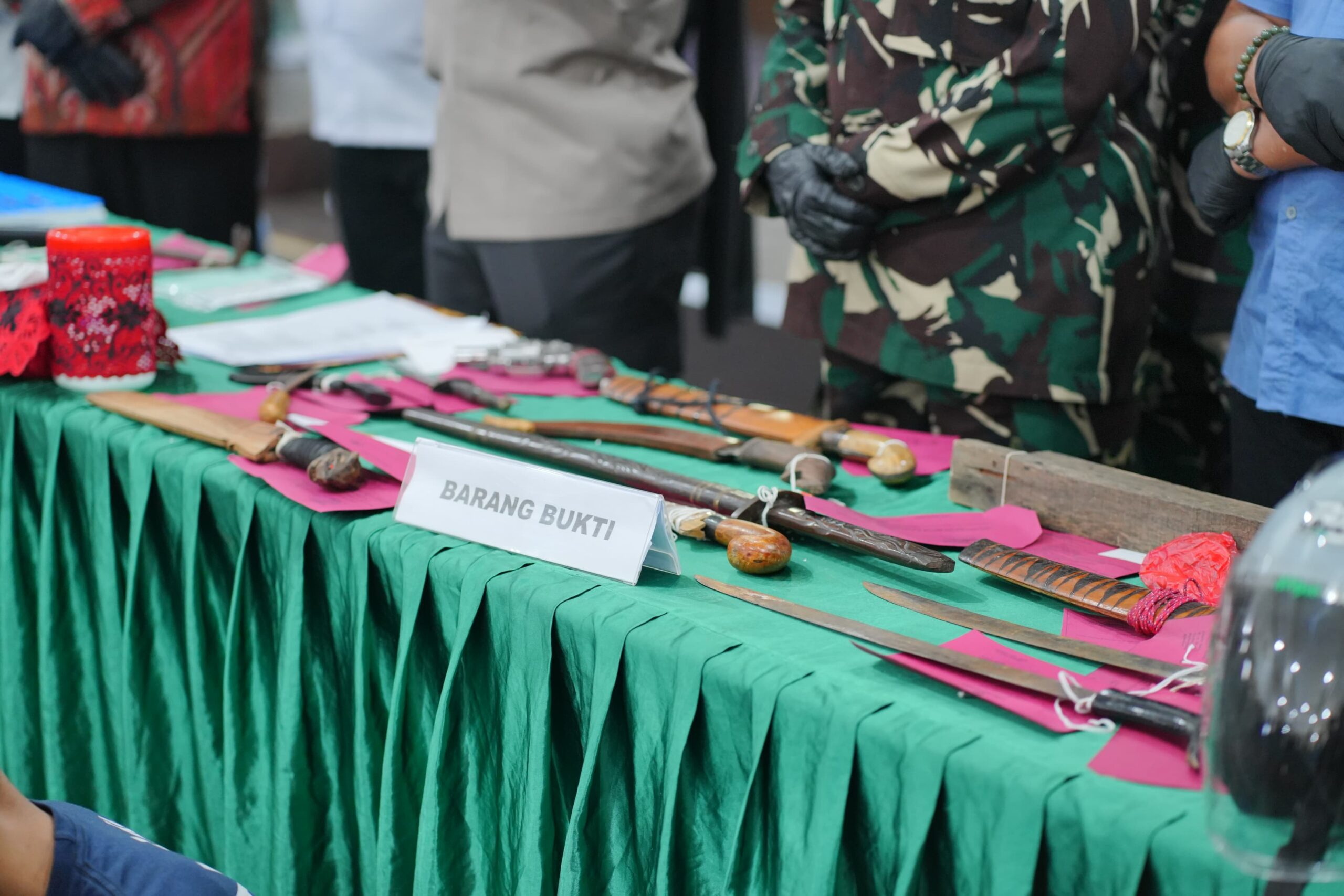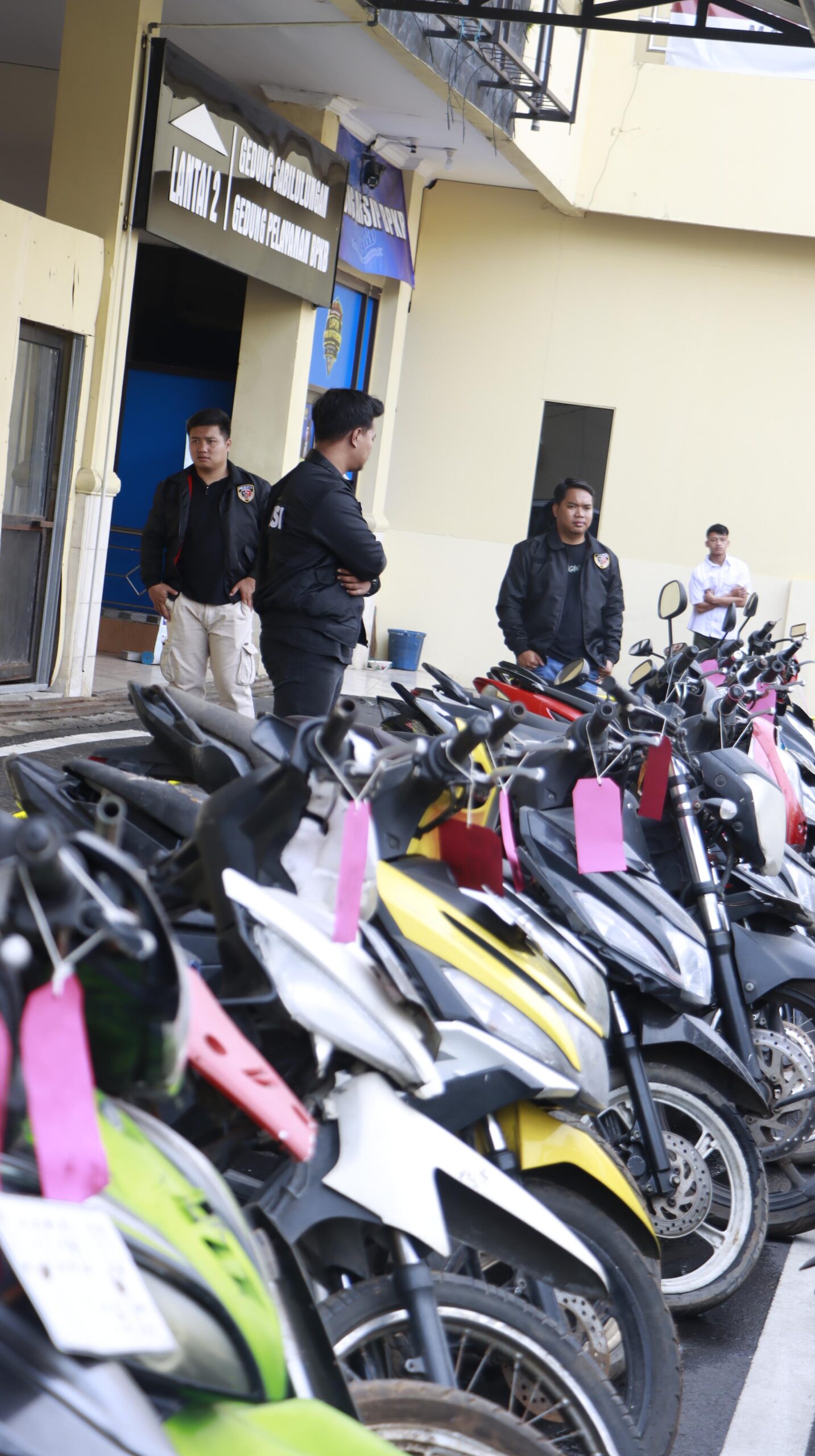 Dari tangan para pelaku, polisi juga berhasil menyita berbagai barang bukti, di antaranya 34 unit sepeda motor, dua unit mobil, empat buah kunci astag (alat pencuri motor), 16 senjata tajam, satu unit airsoft gun, dua unit handphone, dan 45 barang bukti lainnya.