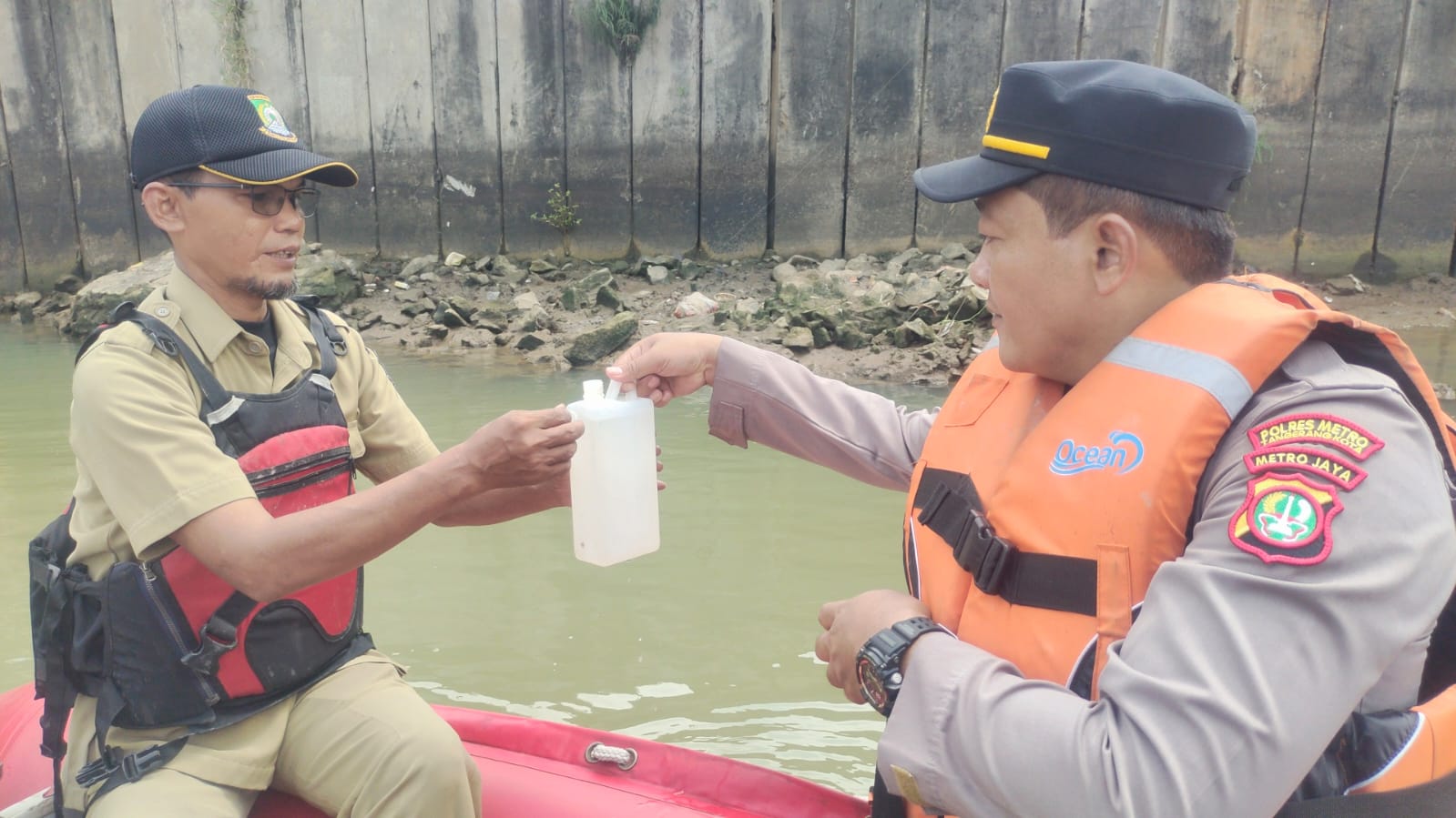 Selain melakukan pengecekan di bantaran sungai, Kapolres juga menelusuri aliran Sungai Cisadane menggunakan perahu karet dan pelampung, didampingi petugas Dinas Lingkungan Hidup serta unsur Kelurahan, guna melihat langsung kondisi air di beberapa titik.