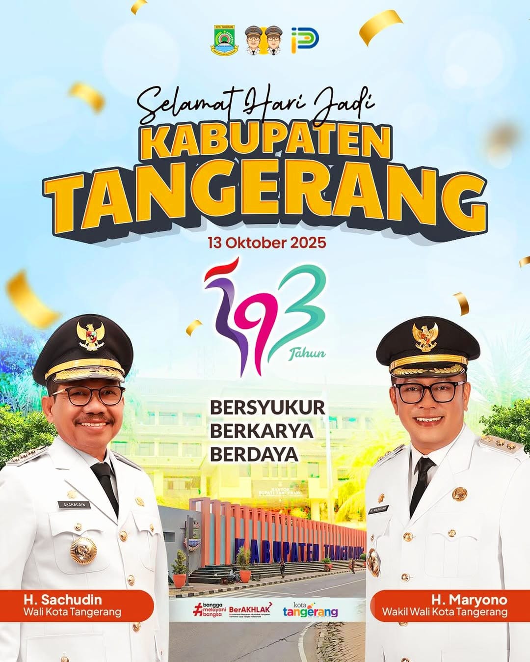 “Atas nama Pemerintah Kota Tangerang dan seluruh masyarakat, kami mengucapkan selamat Hari Jadi ke-393 Kabupaten Tangerang. Semoga Kabupaten Tangerang senantiasa tumbuh menjadi daerah yang maju, sejahtera, dan berdaya saing, serta terus menjadi mitra strategis dalam mendorong kemajuan wilayah Tangerang Raya,” ujar Wali Kota Tangerang, H. Sachrudin.